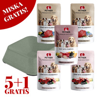 PETNER ZESTAW KARMA DLA PSA MIX SMAKÓW 5x500g + MISKA GRATIS