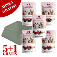 PETNER ZESTAW KARMA PSA JAGNIĘCINA ŻURAWINA 5x500g + MISKA GRATIS