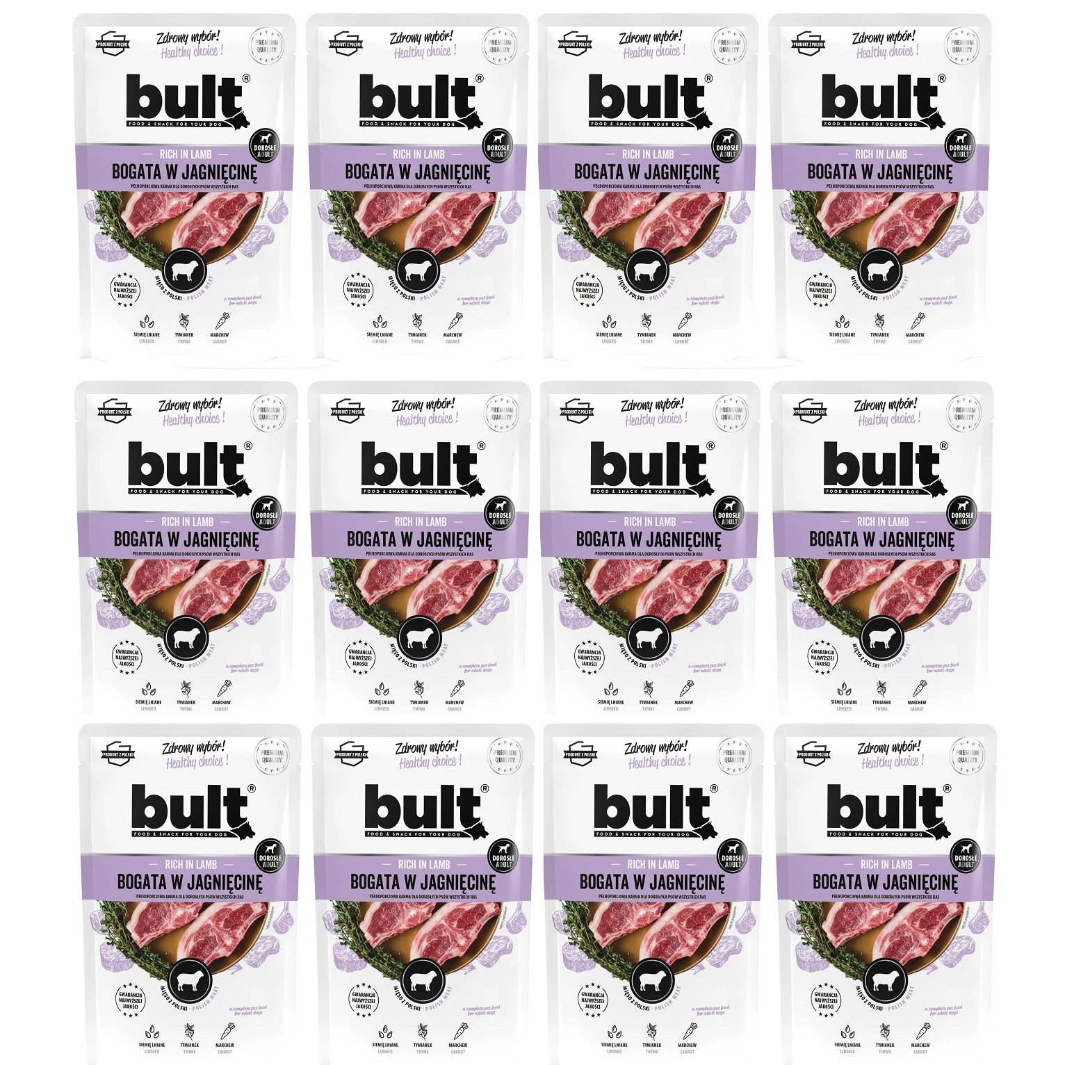 Zestaw BULT, Mokra karma w saszetce dla psa - bogata w jagnięcinę, 12x100g