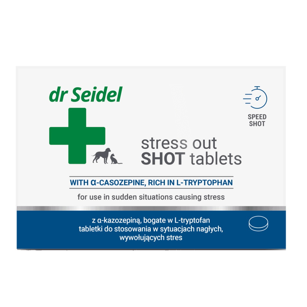 Dr Seidel Stress out SHOT tablets – tabletki do stosowania w sytuacjach nagłych, wywołujących stres, dla psa i kota 10 tabletek