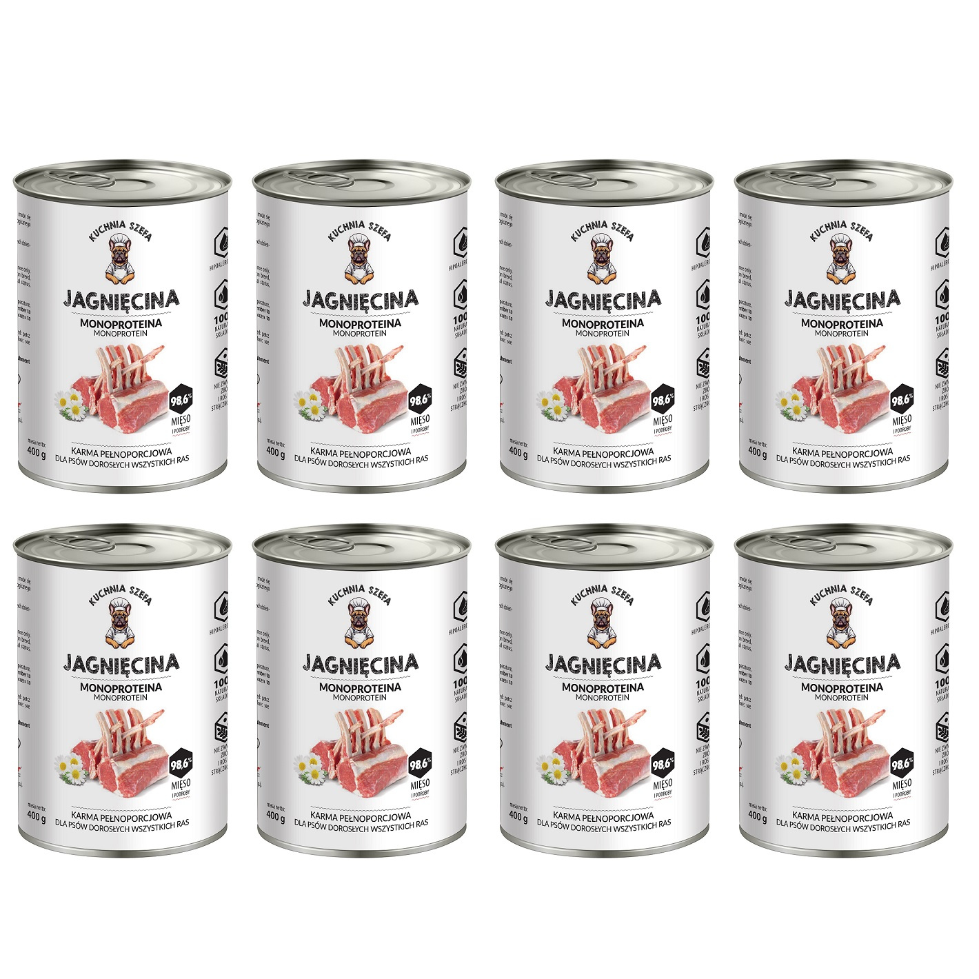 Kuchnia Szefa, Zestaw mokrej karmy w puszkach dla dorosłego psa, Monoproteinowa, Jagnięcina 8x400g