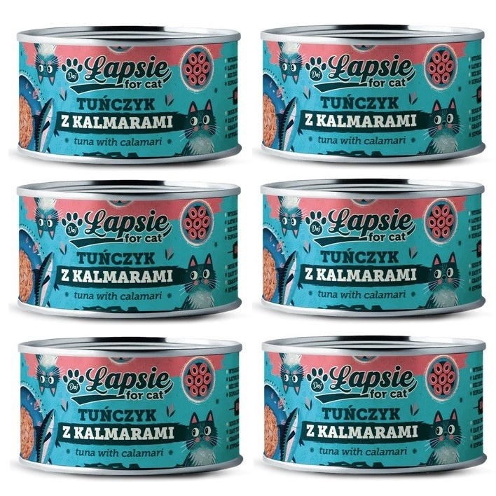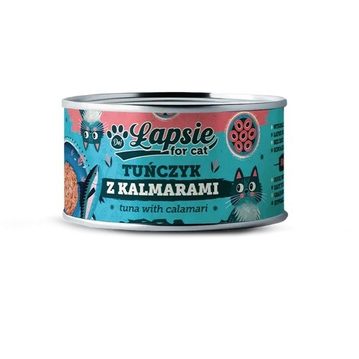 ŁAPSIE FOR CAT MOKRA KARMA DLA KOTA TUŃCZYK Z KALMARAMI W BULIONIE PUSZKA 6x80g