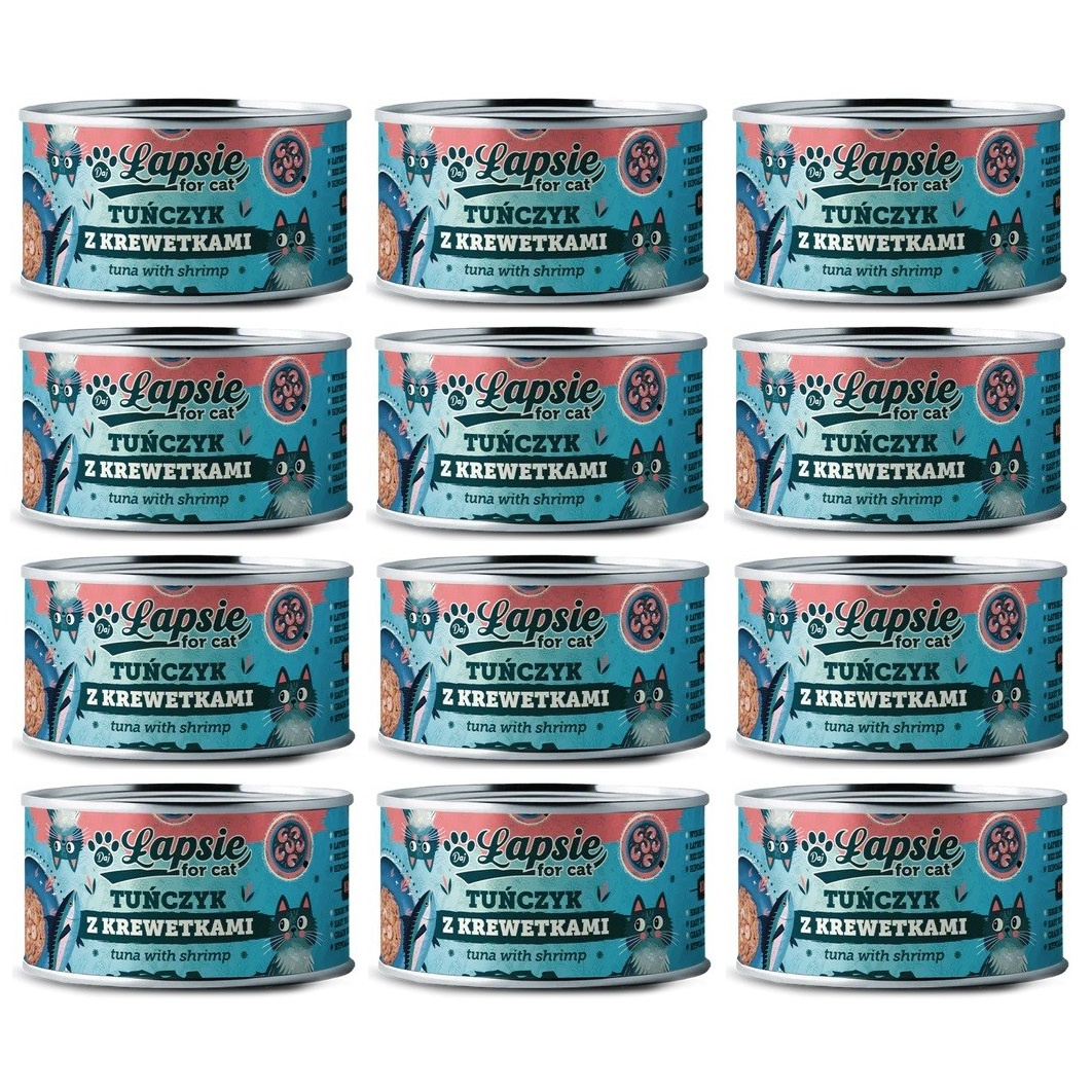 ŁAPSIE FOR CAT MOKRA KARMA DLA KOTA TUŃCZYK Z KREWETKAMI W BULIONIE PUSZKA 12x80g