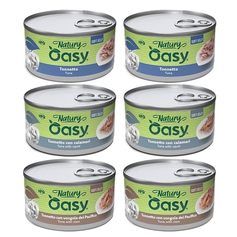 Zestaw Oasy Natury Soft Jelly, Karma mokra dla dorosłych kotów, Mix smaków, puszki 6x150g