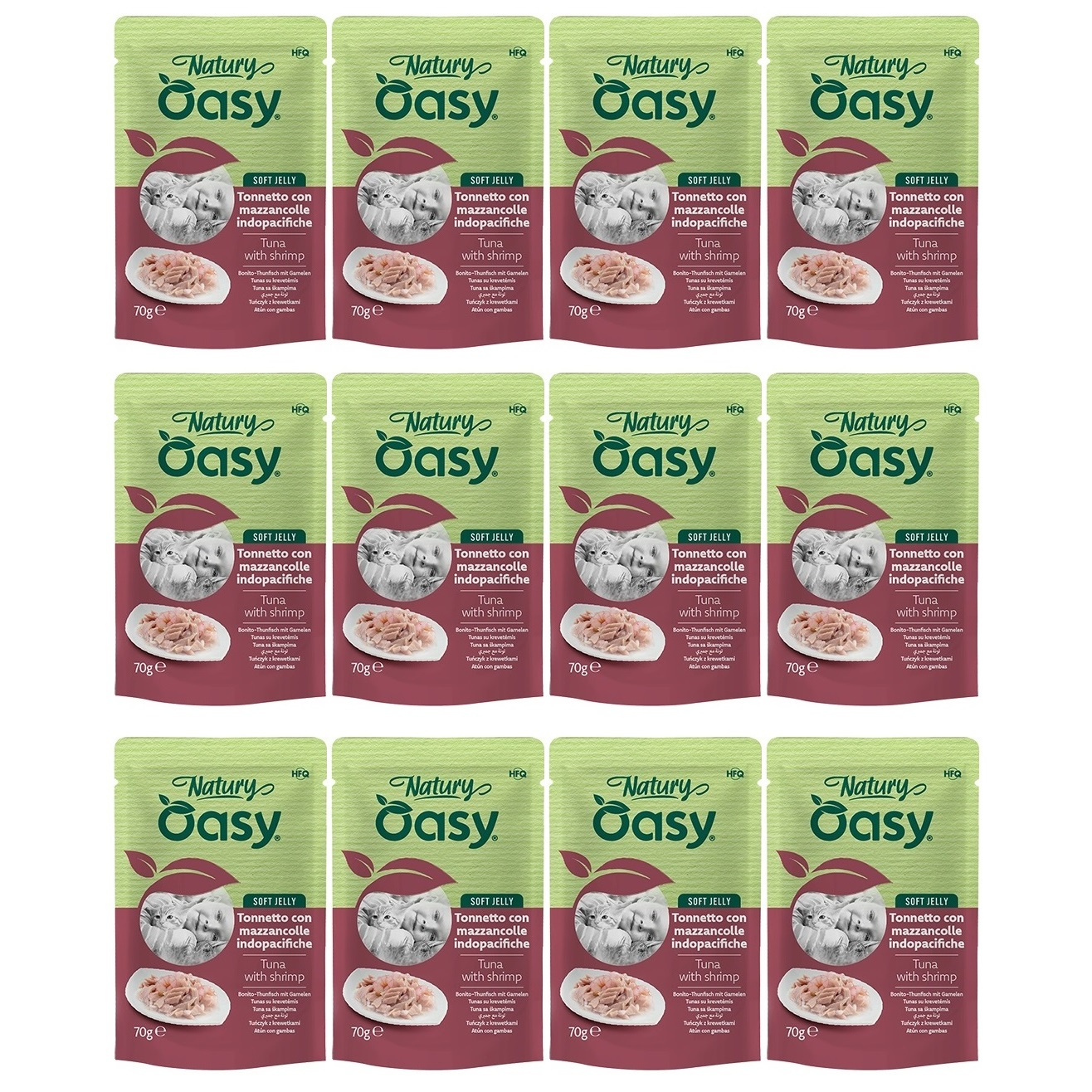 Zestaw Oasy Natury Soft Jelly, Karma mokra dla dorosłych kotów, Tuńczyk z krewetkami, saszetka 12x70g