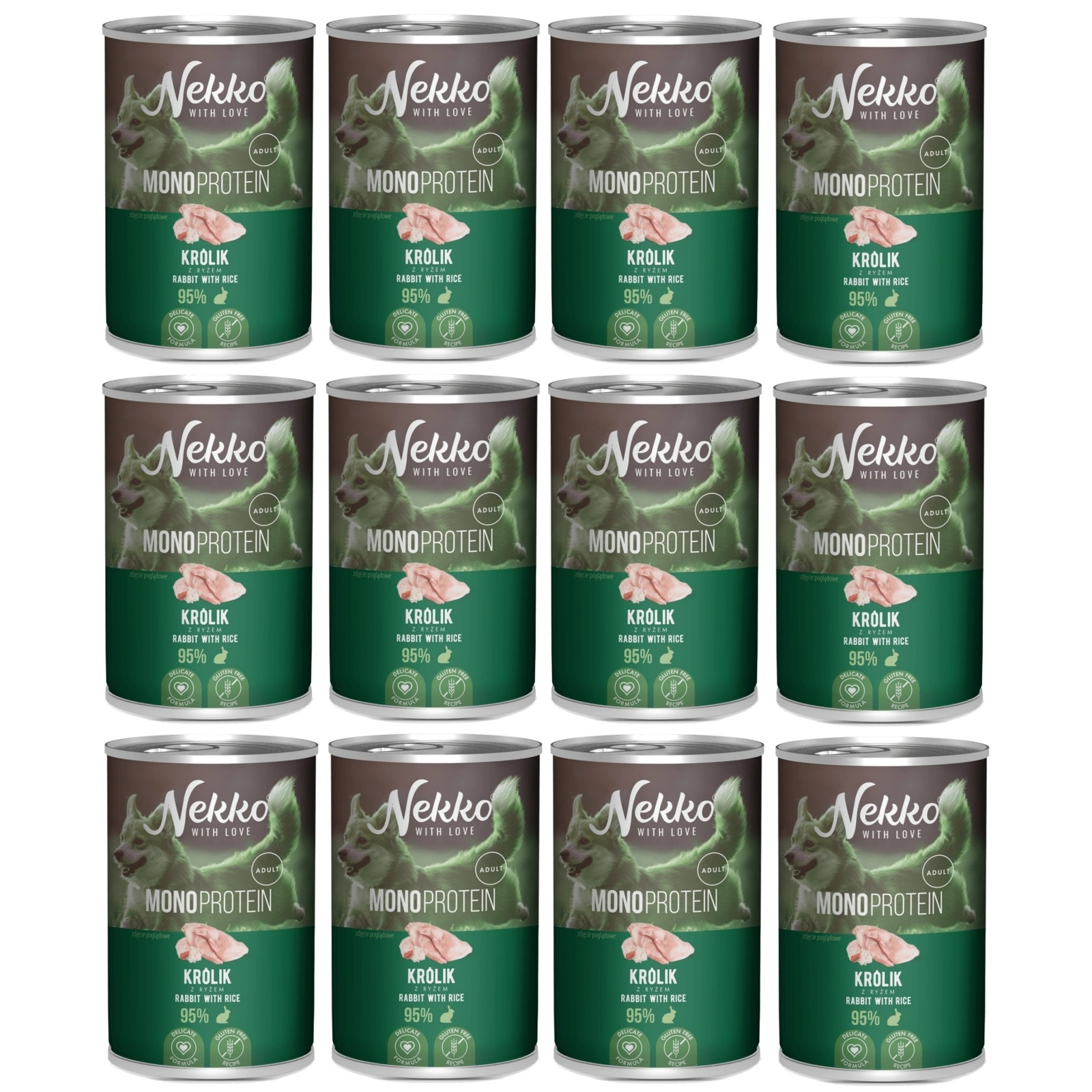 Zestaw NEKKO MONOPROTEIN ADULT, Królik z ryżem, puszka 12x400g