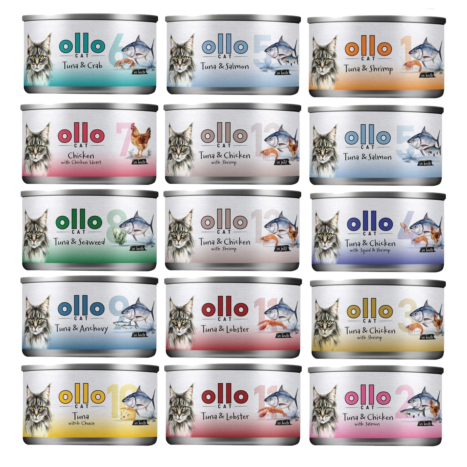 Ollo, Zestaw karm mokrych w puszkach dla kotów dorosłych, kociąt i seniorów, 12x70g