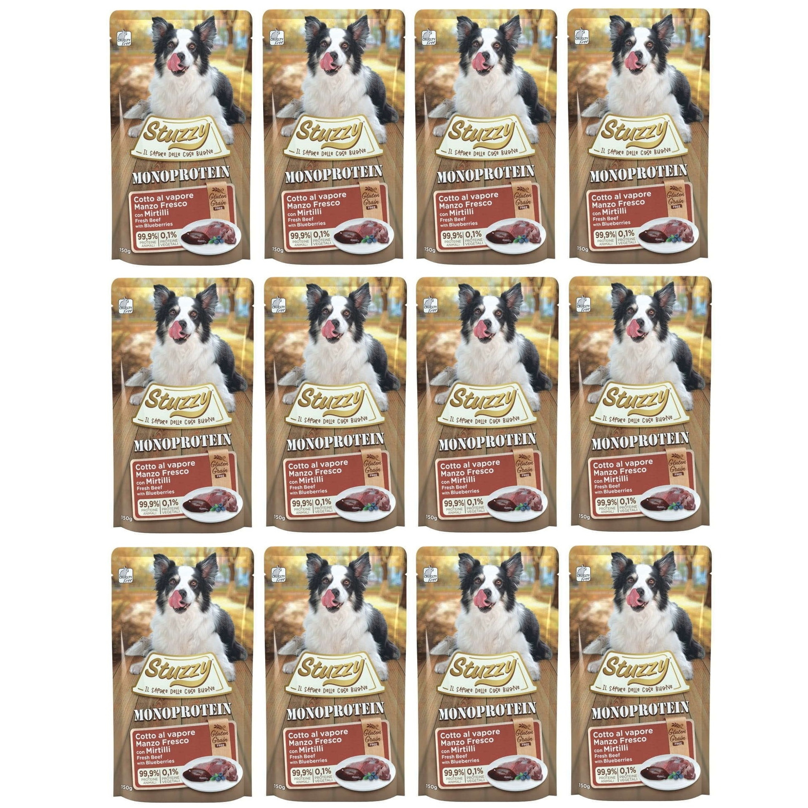 Stuzzy Monoprotein, mokra karma dla psa, wołowina z jagodami, Zestaw 12x150g
