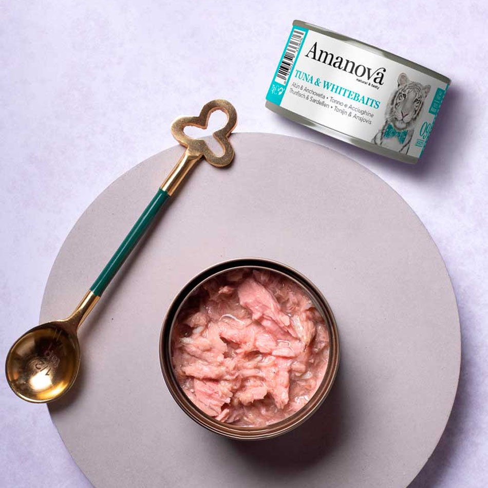 Ten przysmak stanowi karmę uzupełniającą, dlatego należy go łączyć z kompletną dietą Amanova, aby zachować zdrowe i zbilansowane odżywianie. Bogaty w białko tuńczyk zawiera naturalną taurynę, która pomaga utrzymać wzrok i serce kota w optymalnej kondycji, a ryby zawierają również niezbędne minerały, takie jak potas i wapń. Aby koty były szczęśliwsze i zdrowsze, podawaj im karmę Amanova.