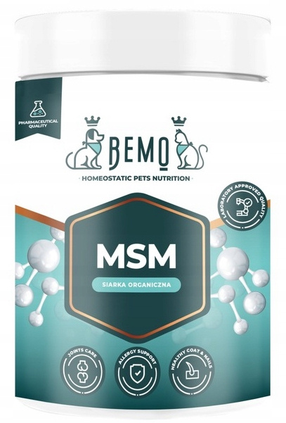 Bemo MSM to metylosulfonylometan w najczystszej postaci organicznej siarki biogennej jakości farmaceutycznej. MSM jest to naturalnie występująca substancja, która zawiera siarkę, pierwiastek chemiczny istotny dla wielu procesów biologicznych. MSM jest stosowany jako suplement diety dla zwierząt z uwagi na szereg korzyści prozdrowotnych.