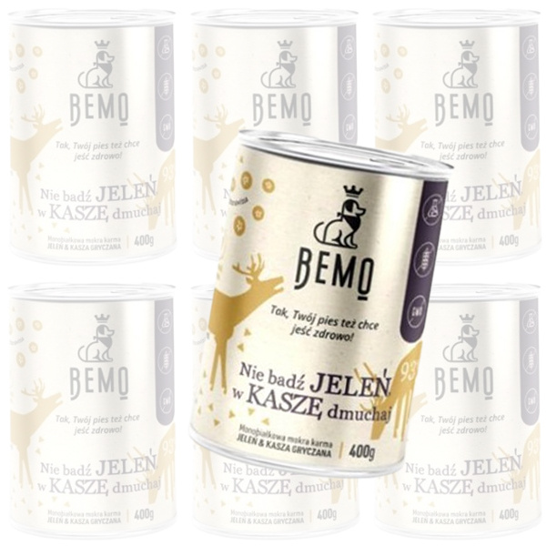 BEMO PAKIET NIE BĄDŹ JELEŃ W KASZĘ DMUCHAJ KARMA MOKRA DLA PSA 6x400g
