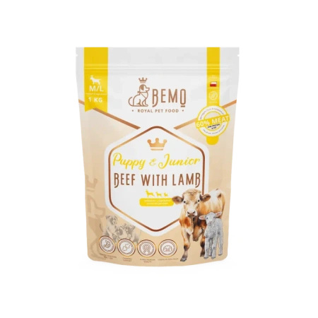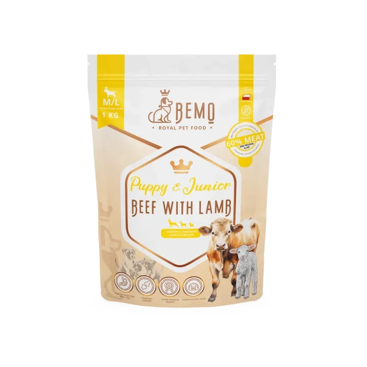 BEMO PUPPY JUNIOR KARMA DLA SZCZENIĄT RAS ŚREDNICH I DUŻYCH WOŁOWINA JAGNIĘCINA 1kg