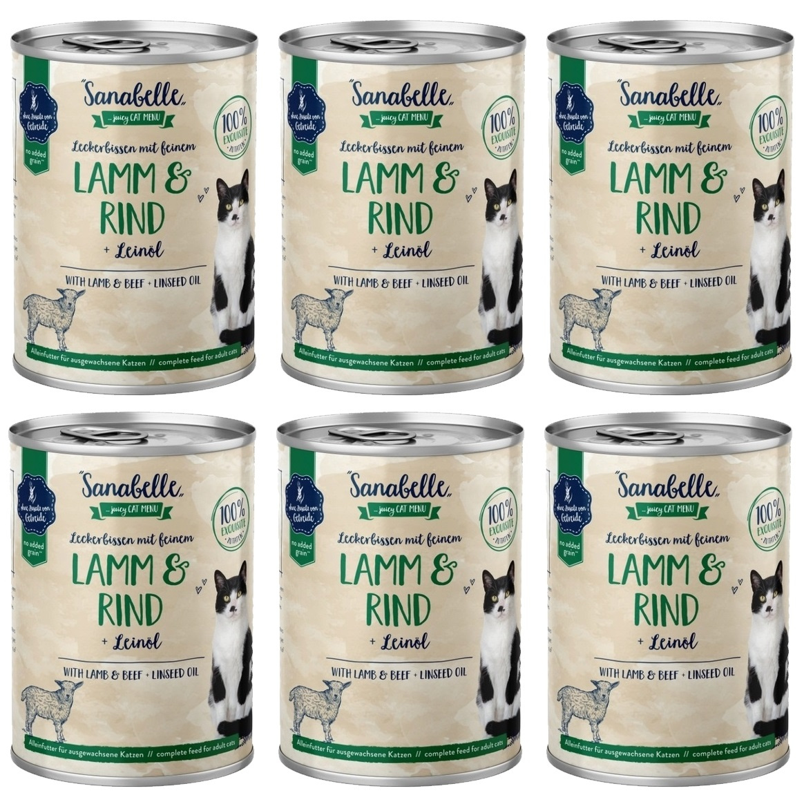 Mokra, mięsna karma Sanabelle z soczystą jagnięciną i wołowiną + olej lniany została starannie przygotowana z wartościowych i wysokiej jakości składników dla Twojego dorosłego kota.