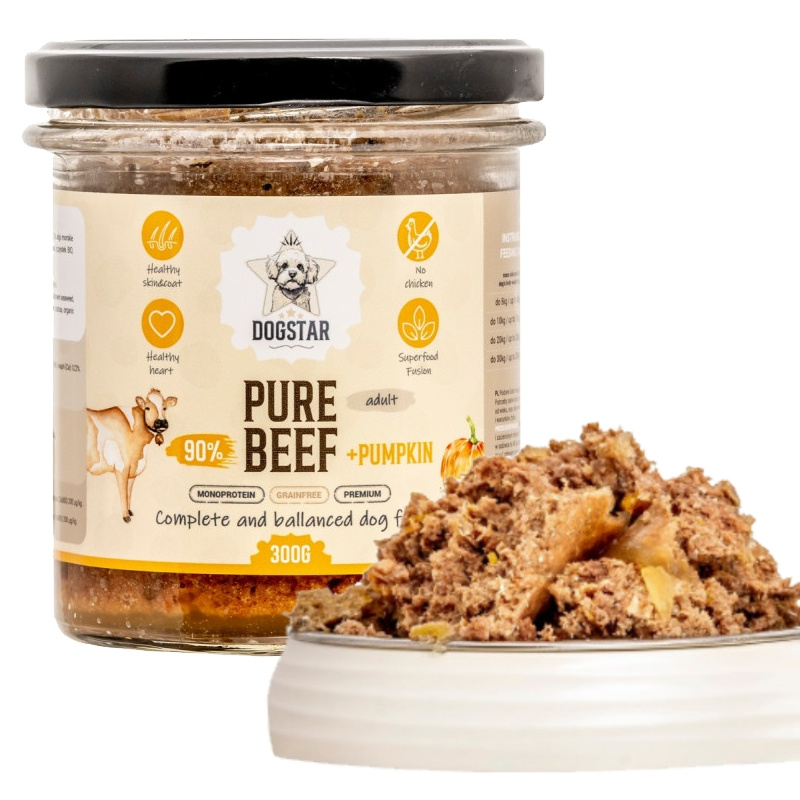 Dogstar Pure Beef - Pełnoporcjowa, zbilansowana karma dla psów z mięsa wołowego 300g