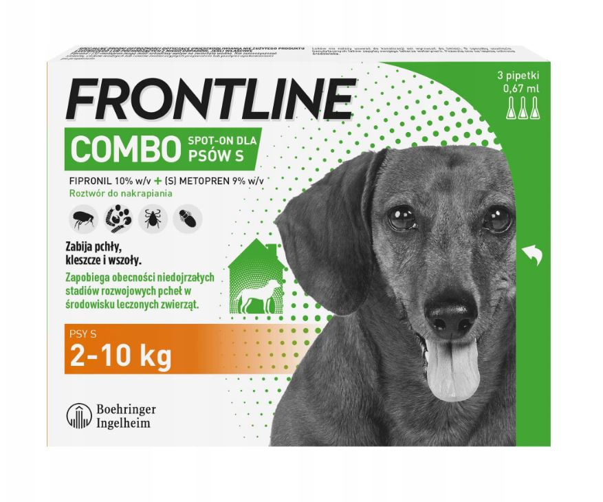 FRONTLINE COMBO SPOT-ON S FIPRONIL KROPLE NA PCHŁY KLESZCZE DLA PSÓW 2-10kg PIPETKI 3x0,67ml