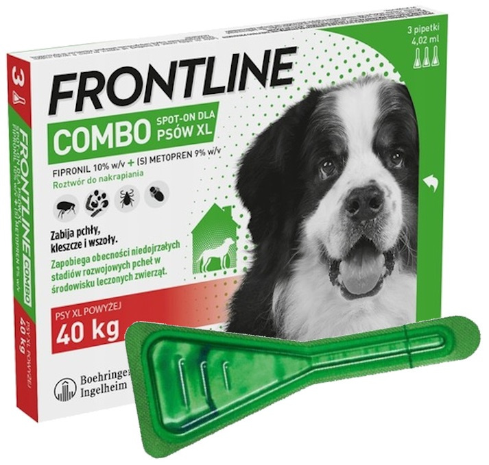 FRONTLINE COMBO SPOT-ON XL FIPRONIL KROPLE NA PCHŁY KLESZCZE DLA PSÓW POWYŻEJ 40kg PIPETKI 3x4,02ml