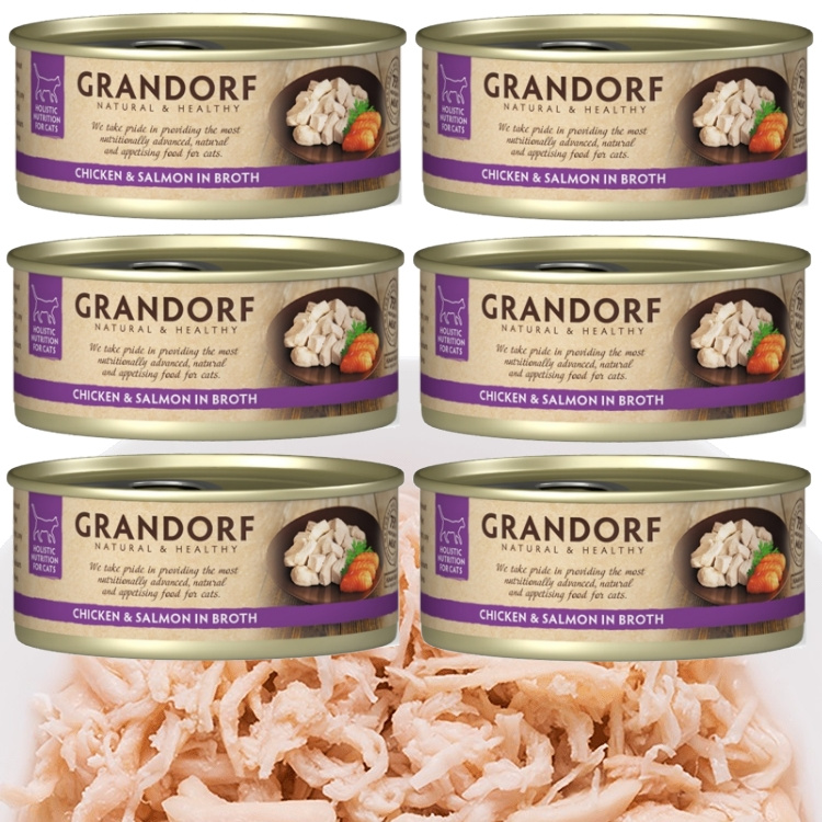 Zestaw mokrych karm Grandorf Filet z kurczaka z łososiem dla dorosłych kotów 6x70g.