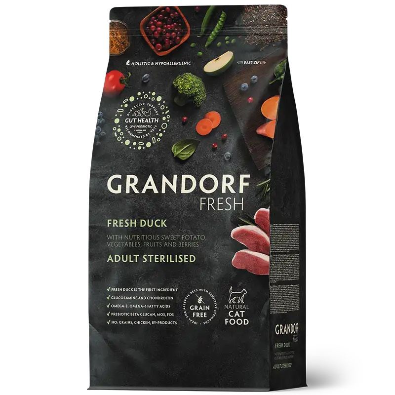 Grandorf Fresh Duck, Adult Sterilised - Świeża kaczka z batatami dla dorosłych kotów sterylizowanych lub starszych, 2kg