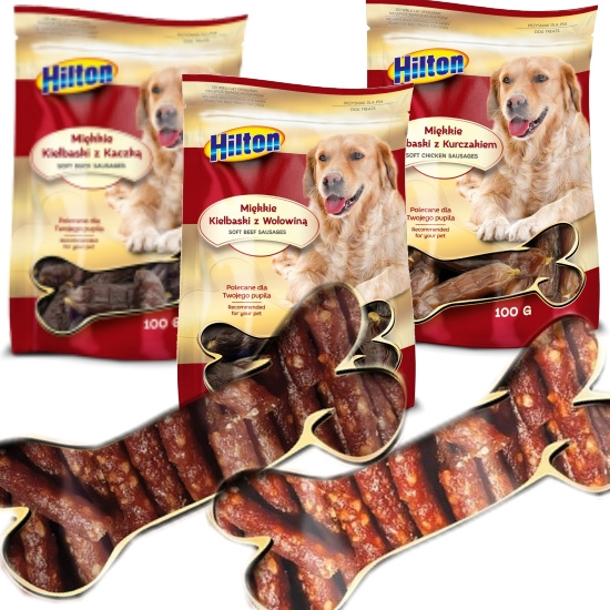 HILTON PRZYSMAK DLA PSA SMAKOŁYK MIĘKKIE KIEŁBASKI KACZKA WOŁOWINA KURCZAK 3x100g