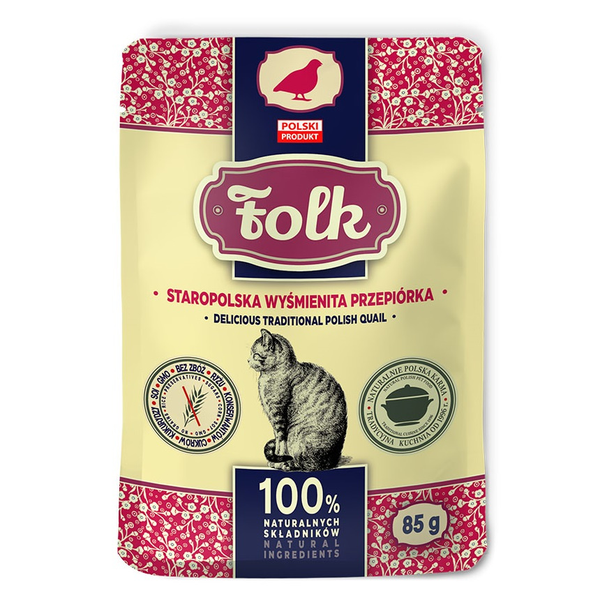 Folk, Staropolska wyśmienita przepiórka, mokra karma dla kotów dorosłych, saszetka 85g
