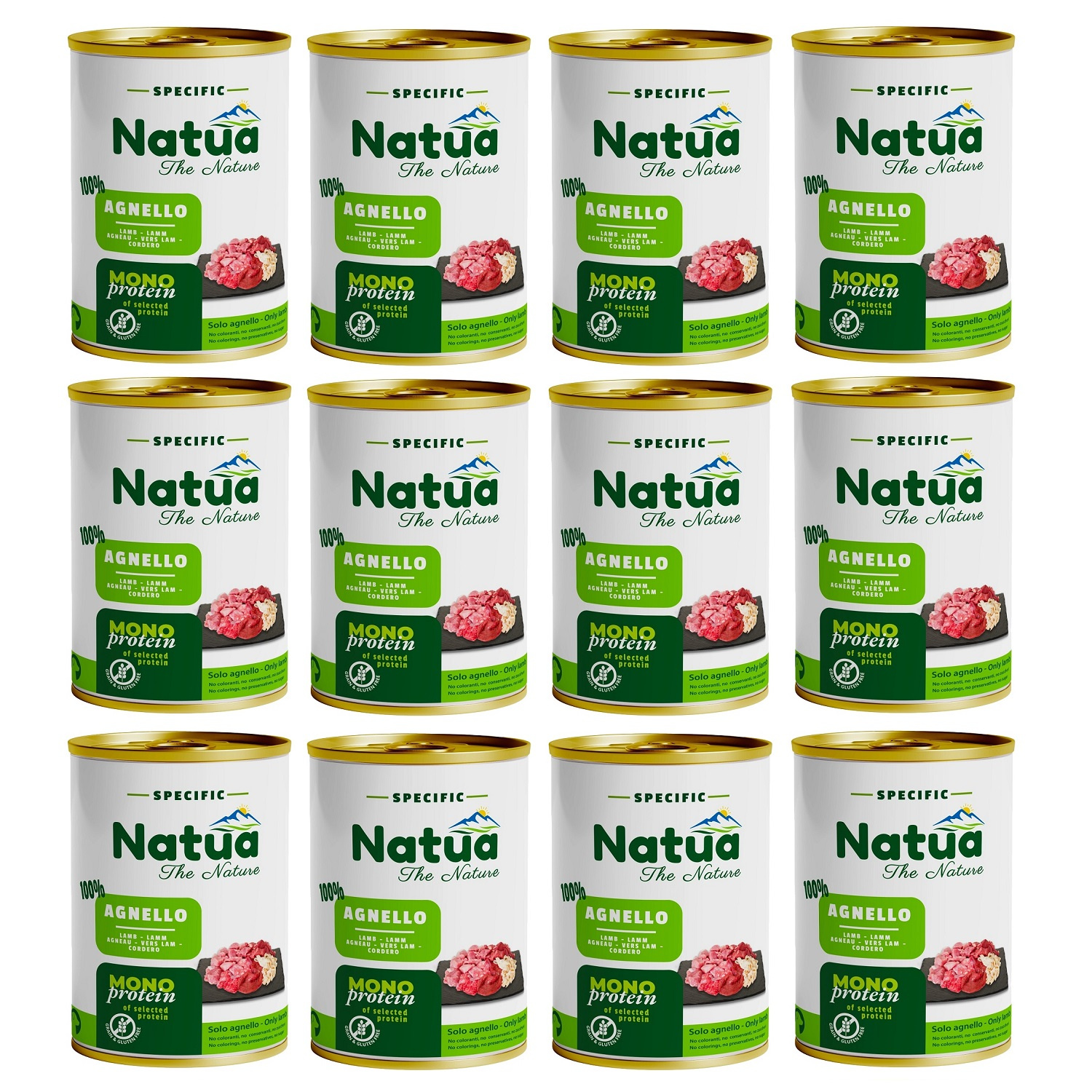 Zestaw Natua Specific, Mokra karma monoproteinowa w puszkach dla dorosłych psów, Jagnięcina, 12x400g