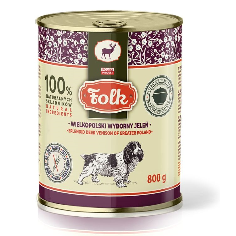 Folk, Wielkopolski wyborny jeleń, mokra karma dla psów, 800g