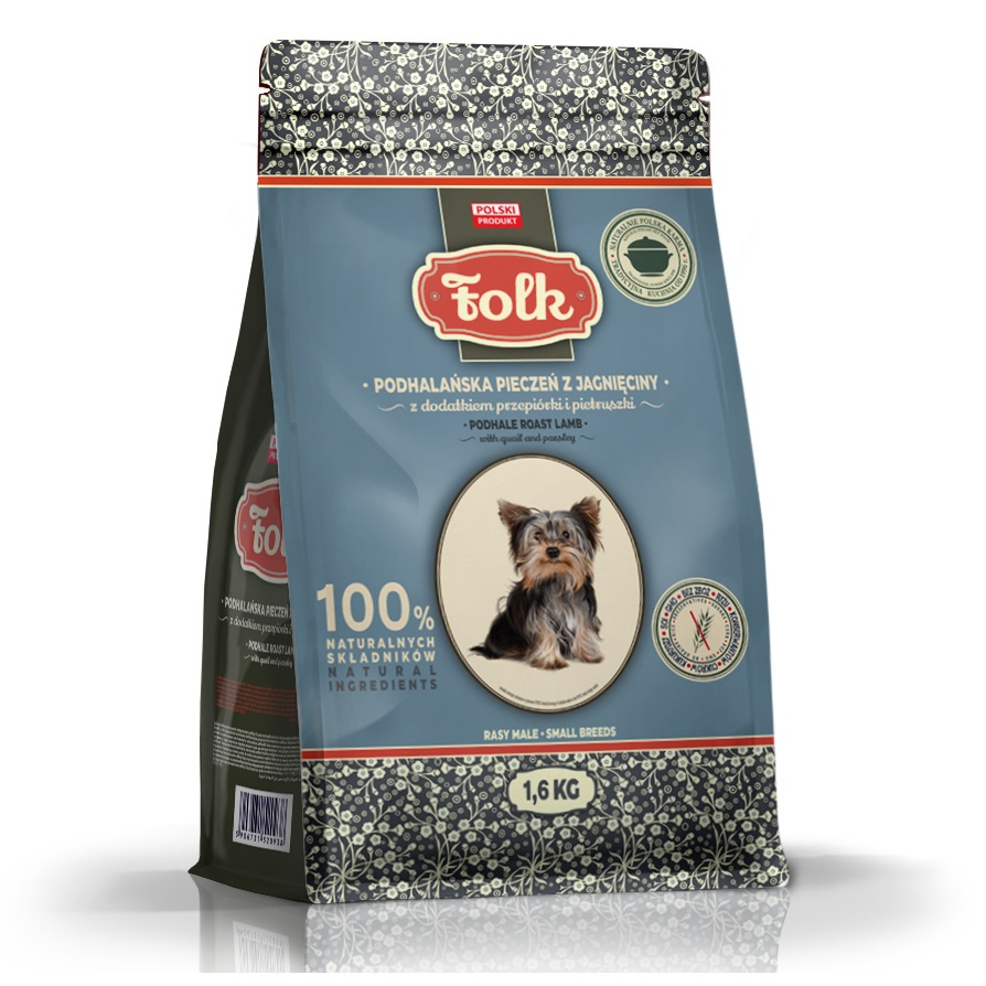 Folk, Podhalańska pieczeń z jagnięciny z dodatkiem przepiórki i pietruszki, sucha karma dla psów ras małych i miniaturowych, 1,6kg