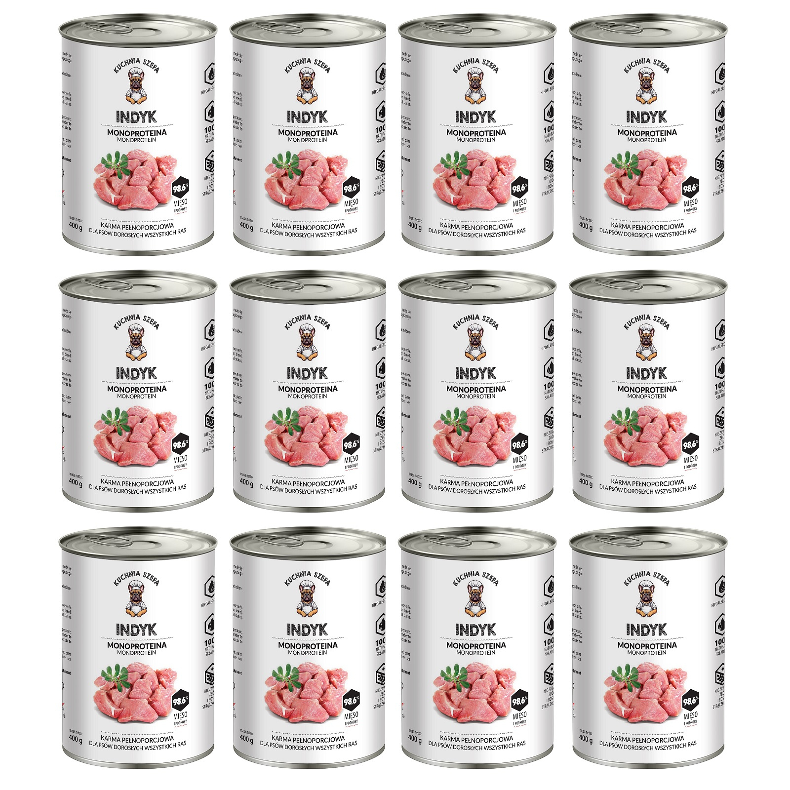 Kuchnia Szefa, Zestaw mokrej karmy w puszkach dla dorosłego psa, Monoproteinowa, Indyk 12x400g