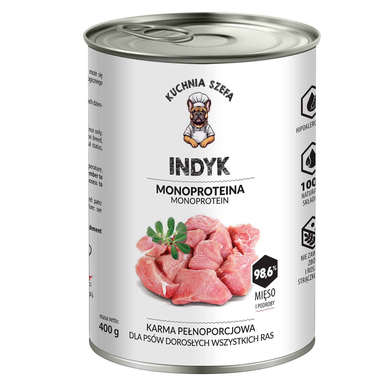 - Kuchnia Szefa, Mokra karma w puszce dla dorosłego psa, Monoproteinowa, Indyk 400g x1