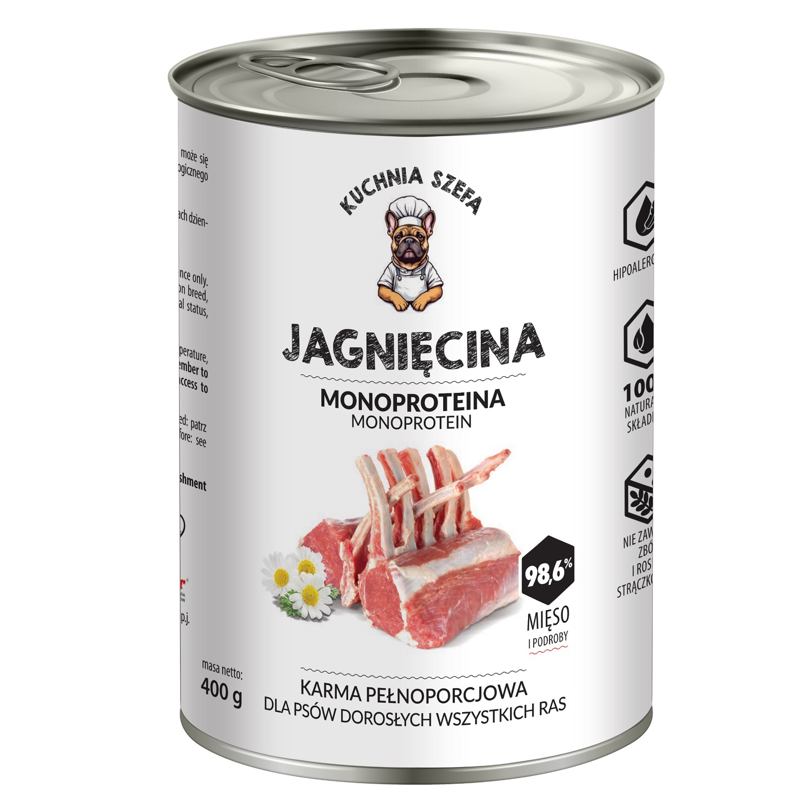 - Kuchnia Szefa, Mokra karma w puszce dla dorosłego psa, Monoproteinowa, Jagnięcina 400g x1