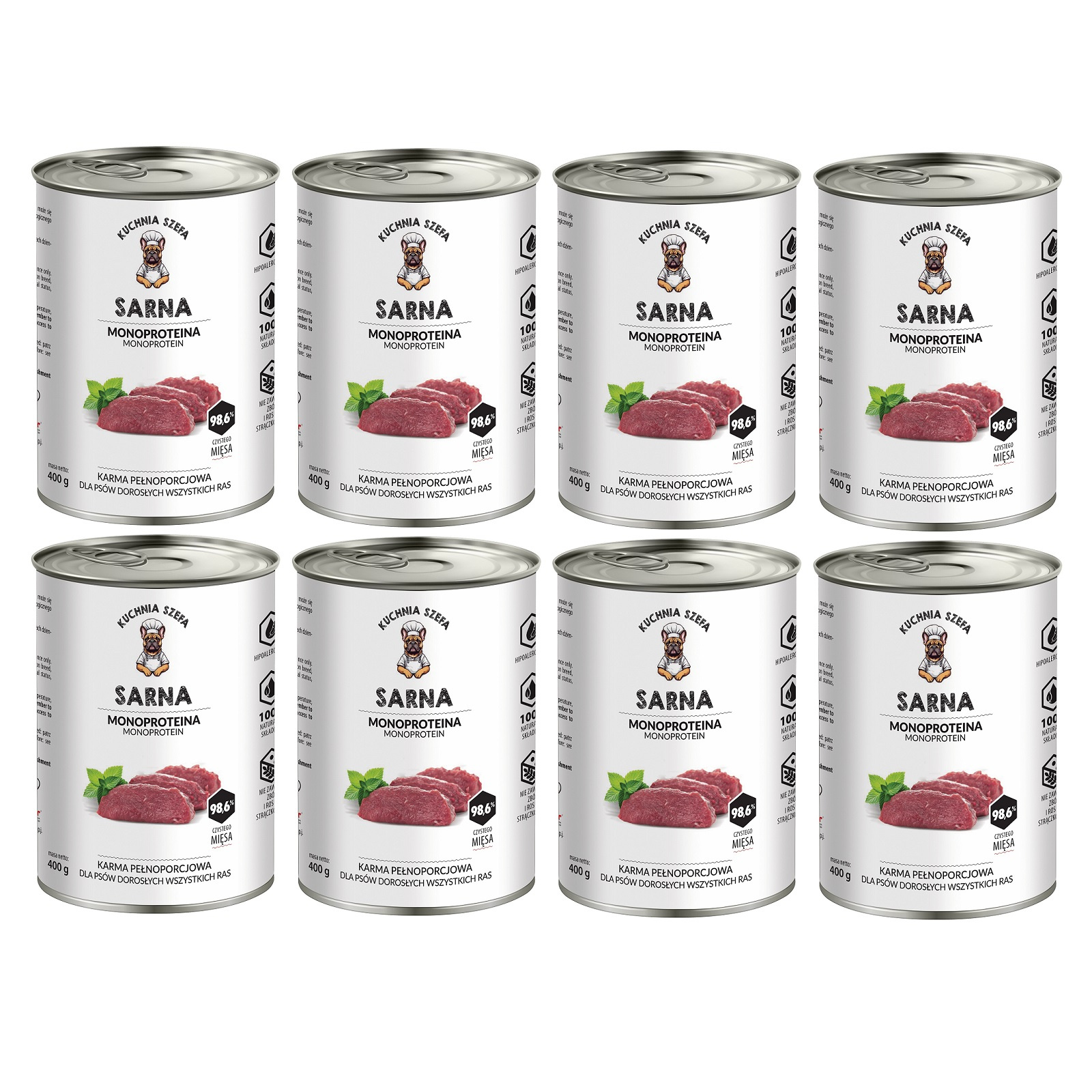 Kuchnia Szefa, Zestaw mokrej karmy w puszkach dla dorosłego psa, Monoproteinowa, Sarna 8x400g