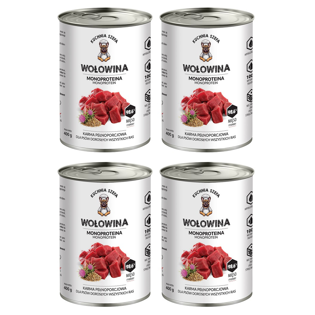 Kuchnia Szefa, Zestaw mokrej karmy w puszkach dla dorosłego psa, Monoproteinowa, Wołowina 4x400g