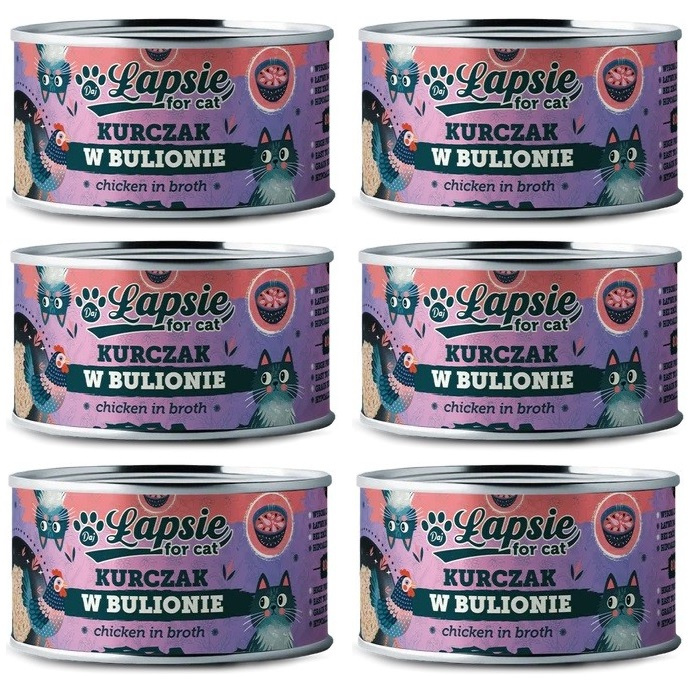 Zestaw Łapsie for cat, Mokra karma dla kotów, Filet z kurczaka w bulionie, puszka 6x80g