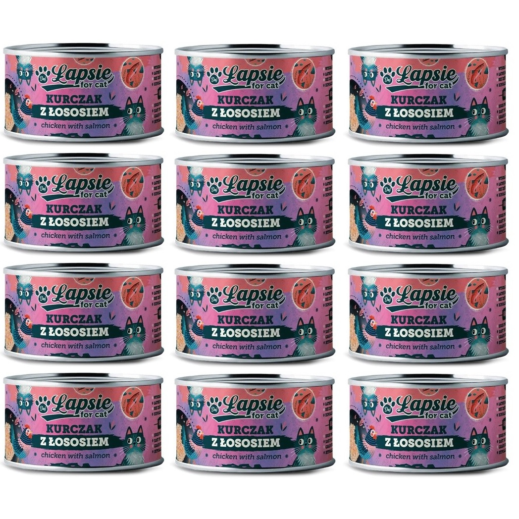 Zestaw Łapsie for cat, Mokra karma dla kotów, Filet z kurczaka w bulionie z łososiem, puszka 12x80g