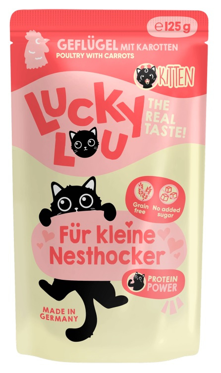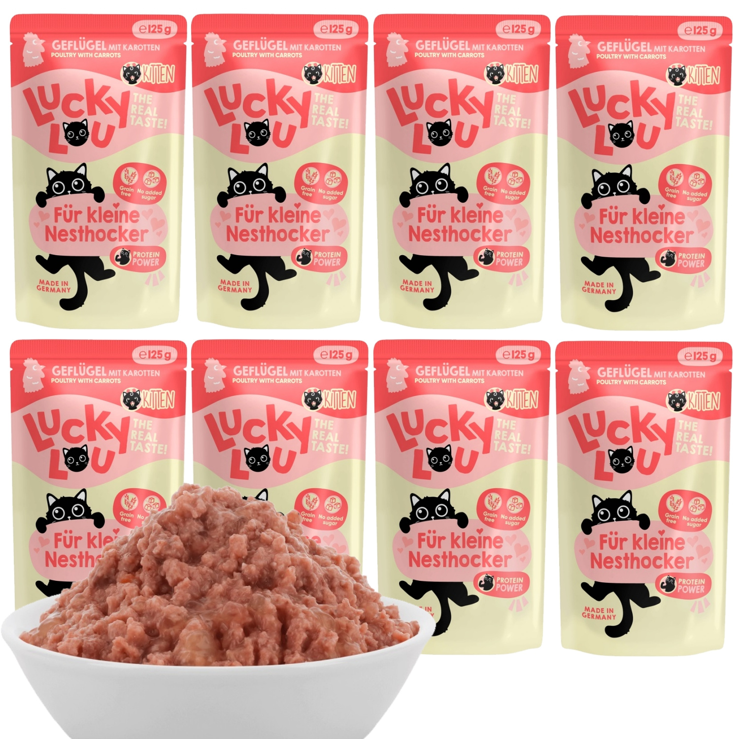 Karma pełnoporcjowa dla kociąt Lucky Lou Lifestage, Drób, 8 saszetek po 125g