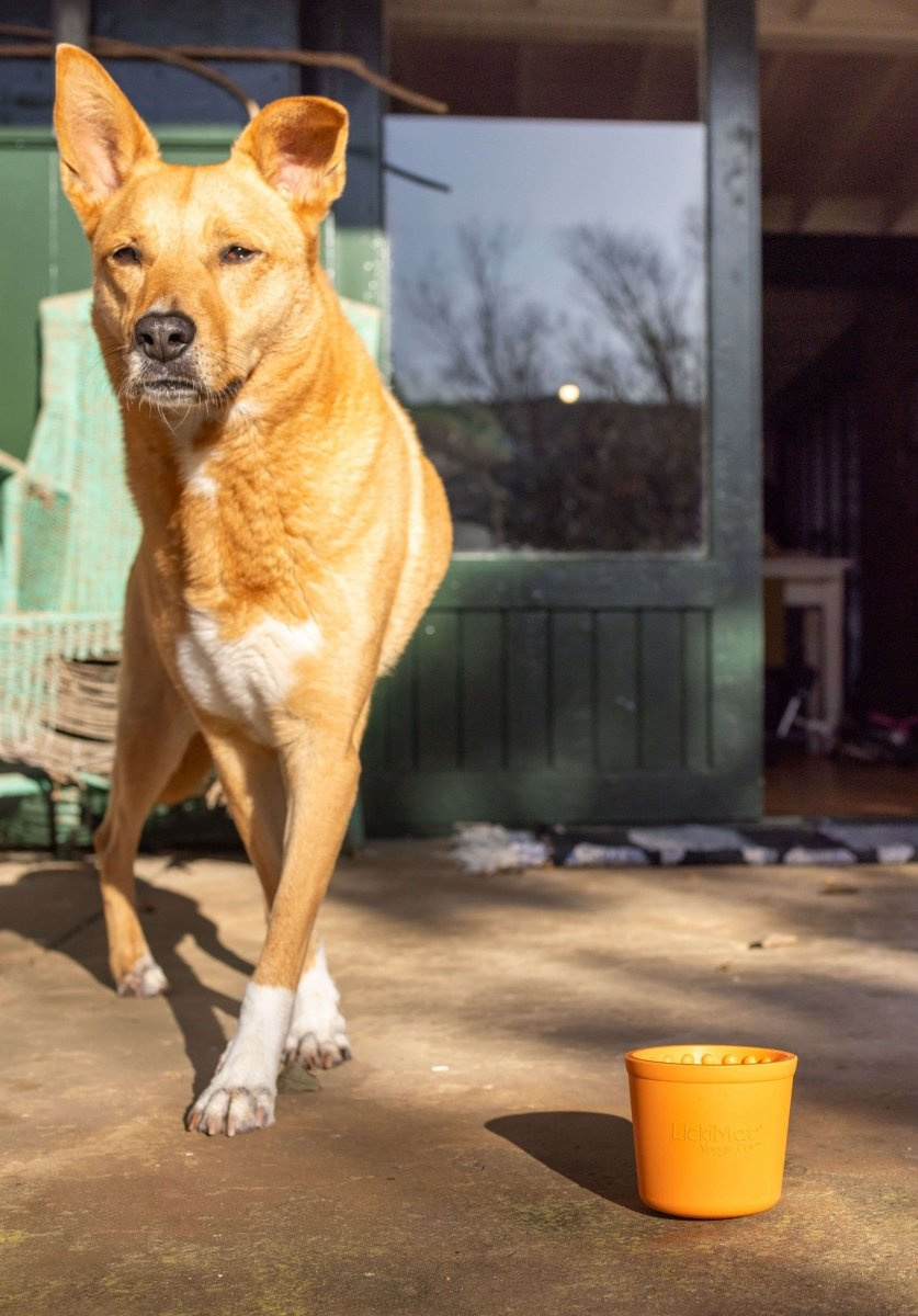 - LickiMat® pomaga uspokoić psa w sytuacjach stresujących jak burza czy wizyta u weterynarza.