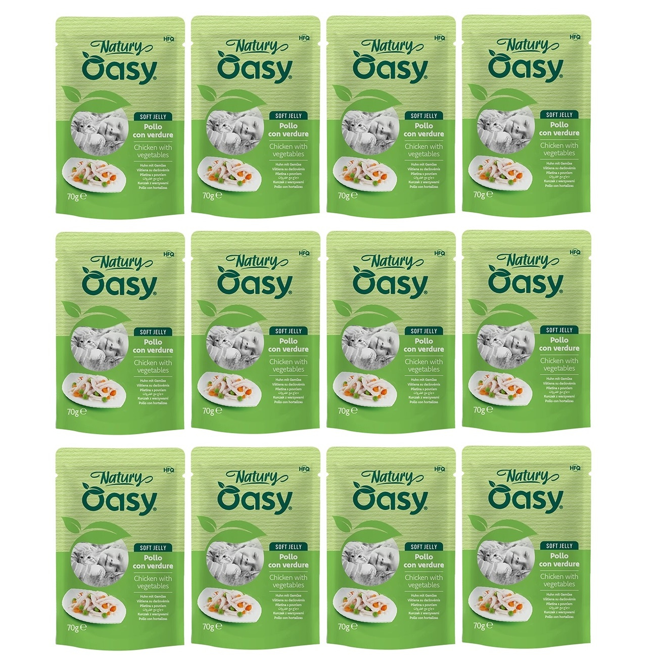 Zestaw Oasy Natury Soft Jelly, Karma mokra dla dorosłych kotów, Kurczak z warzywami, saszetka 12x70g