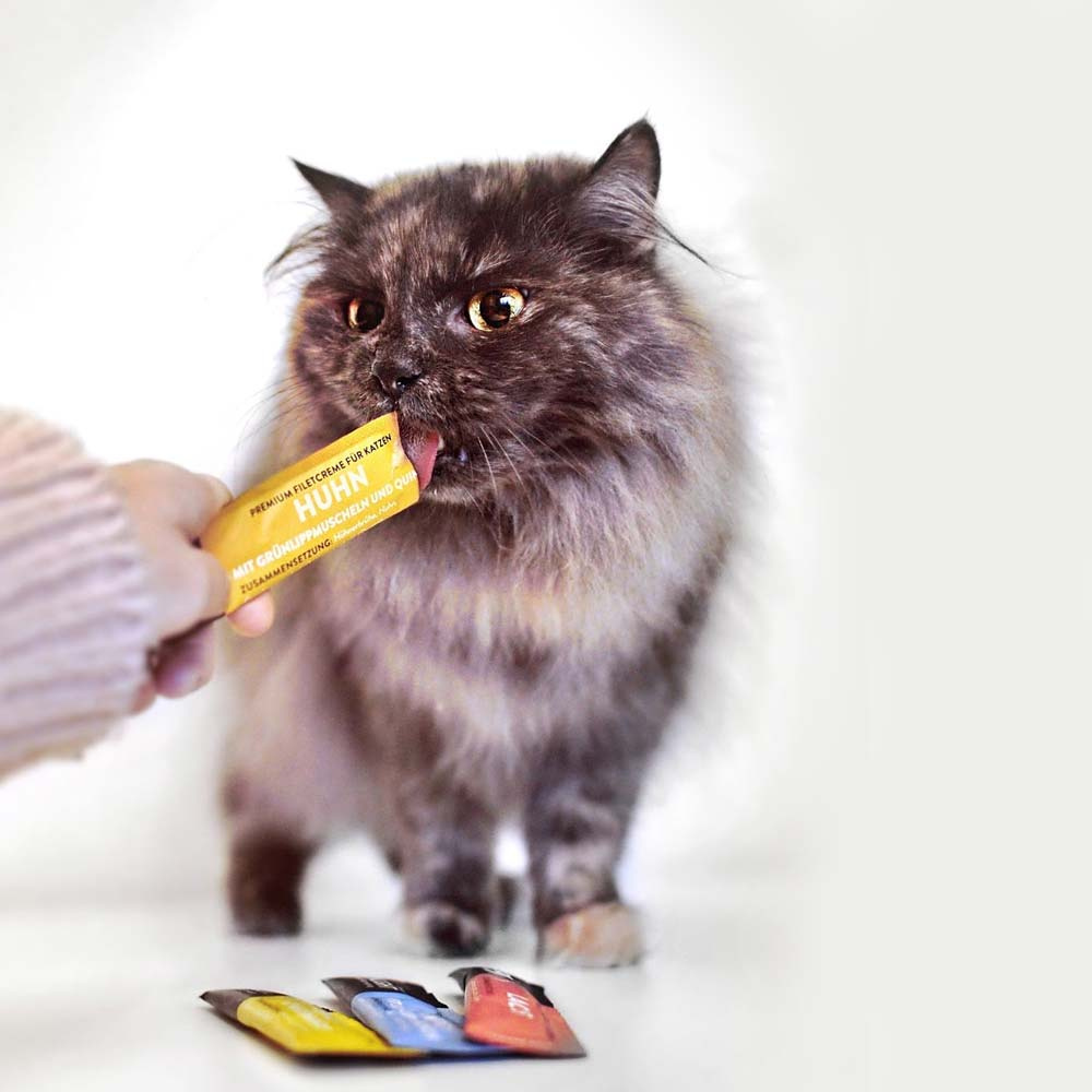 Jeśli szukasz smaczków dla kota bogatych w kwasy Omega 3, dobrze trafiłeś. Przysmaki dla kota zawierają olej z łososia, który poprawia stan skóry, sierść jest miękka i błyszcząca dzięki niemu, a stawy bardziej sprawne.