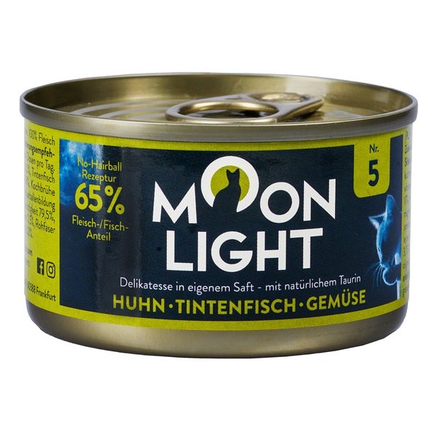 Karma mokra dla kota Moonlight Dinner to lekkostrawne i bogate w kwasy Omega 3 danie, które będzie wspaniałym uzupełnieniem diety Twojego kota. W karmie użyto wyłącznie świeżego mięsa, najwyższej jakości, aby zachować w pokarmie wszystkie jego najcenniejsze składniki odżywcze. Karma Moonlight Dinner jest zdrowa, idealnie dostosowana do potrzeb żywieniowych, a także naturalnej diety kotów. Naturalne składniki, wysoka zawartość najwyższej jakości mięsa, różnorodność składników, a także smaków zadowolą każdego kota, nawet niejadka.