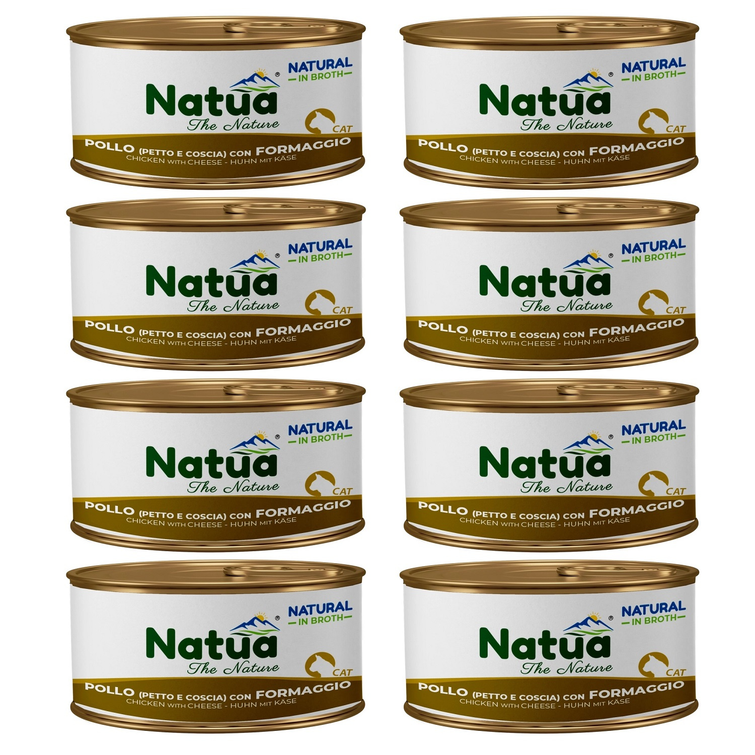 Zestaw Natua Natural, Kurczak (pierś i udka) z serem w bulionie, naturalna klasyczna mokra karma dla dorosłych kotów, 8x85g