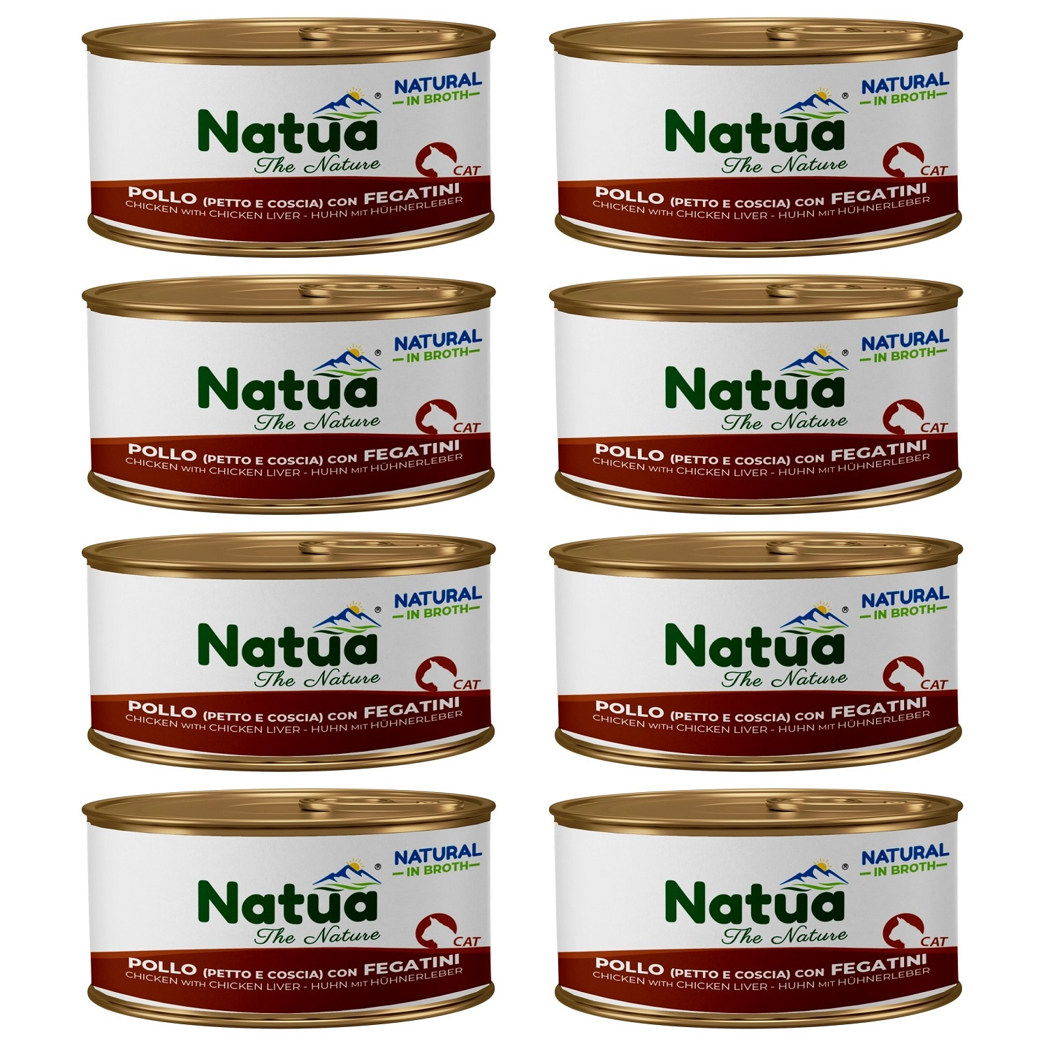Zestaw Natua Natural, Kurczak (pierś i uda) z wątróbką z kurczaka w bulionie, naturalna klasyczna mokra karma dla dorosłych kotów, 8x85g