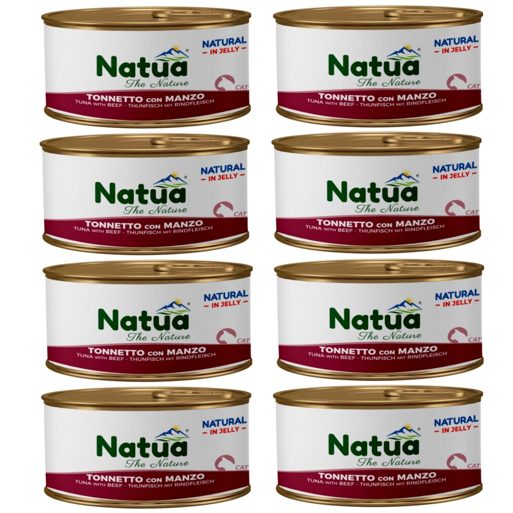 Zestaw Natua Natural Tuńczyk z wołowiną w galaretce 8x85g - naturalna klasyczna mokra karma dla dorosłych kotów.