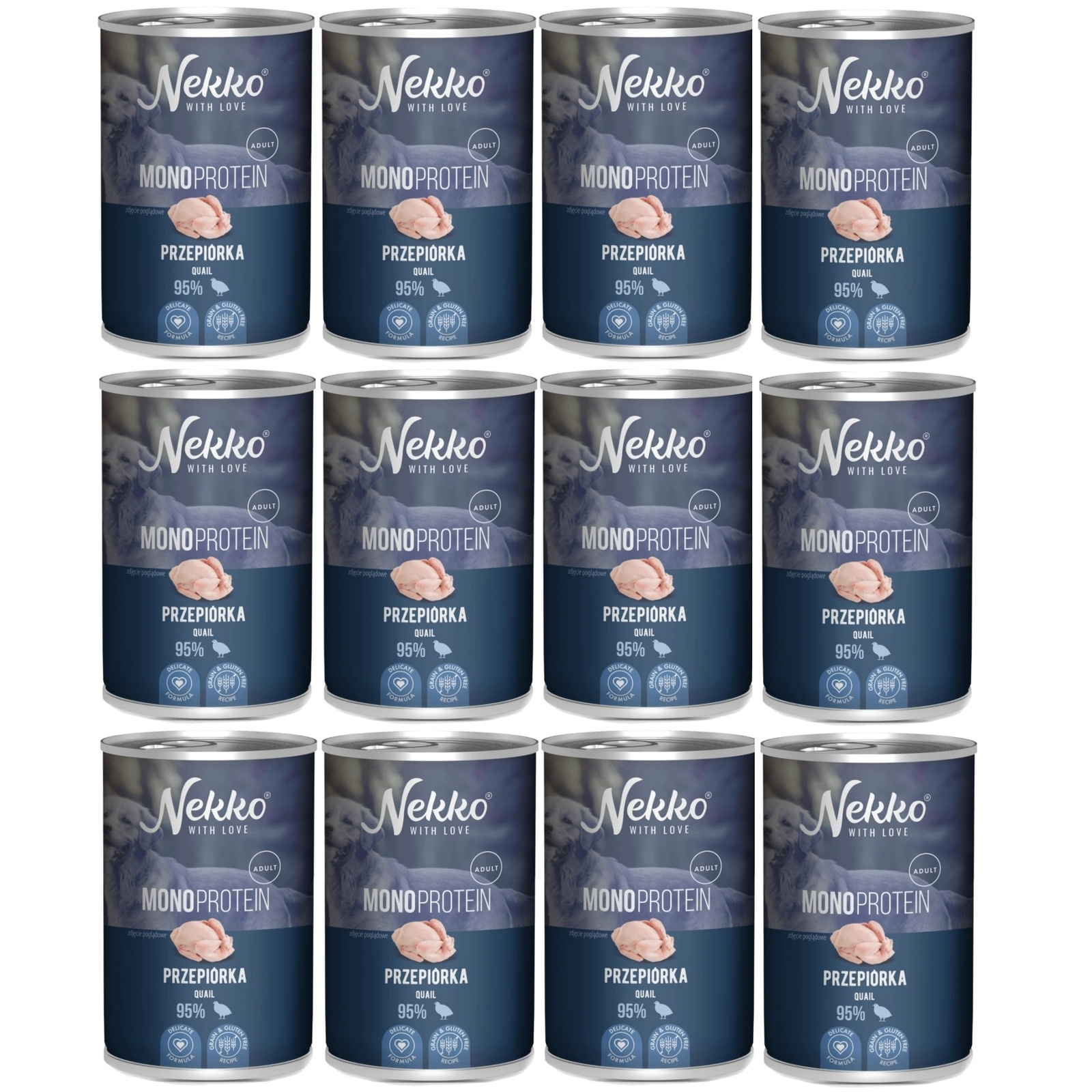 Zestaw NEKKO MONOPROTEIN ADULT, Przepiórka, 12 puszek po 400g