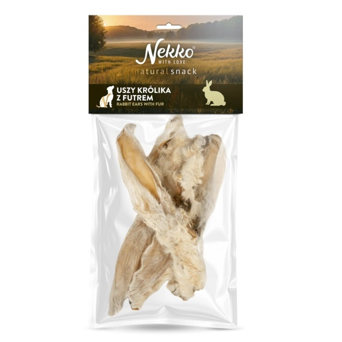 Nekko Natural Snack, Uszy królika z futrem 5szt. / 50g