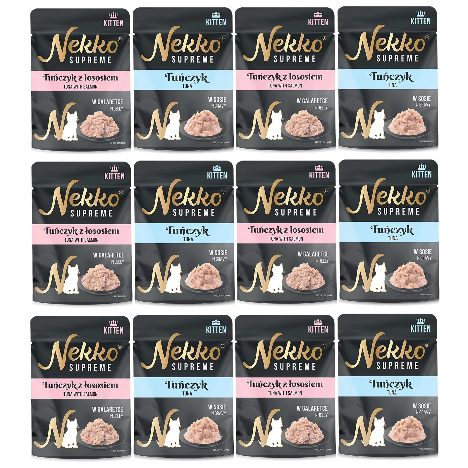 Nekko Supreme Kitten Mix Smaków, Mokra karma w saszetkach dla kociąt, 12x70g
