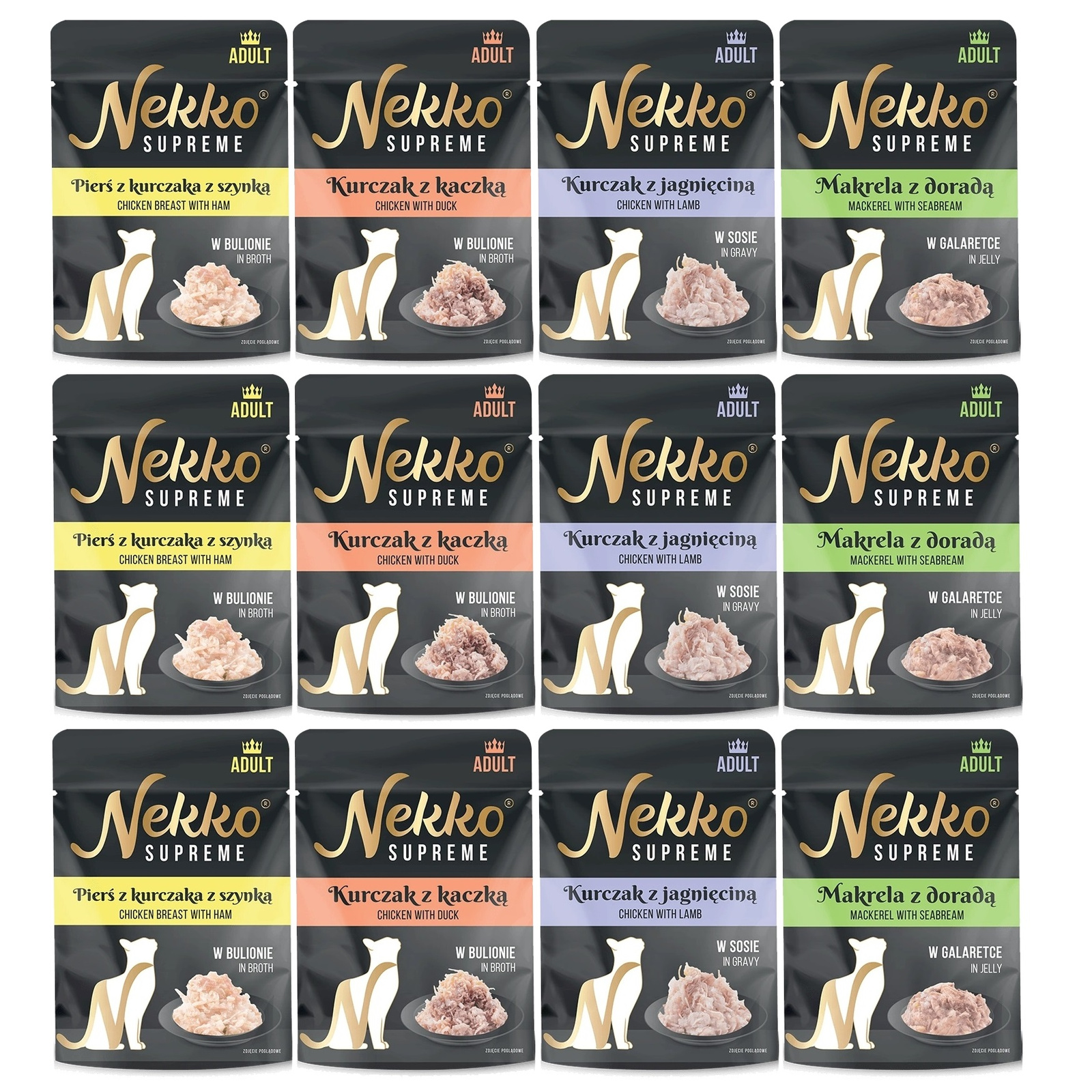 Nekko Supreme Adult Mix Smaków, Mokra karma w saszetkach dla dorosłych kotów, 12x70g