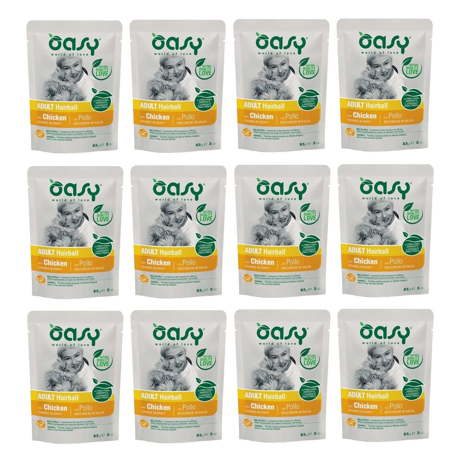 Zestaw Oasy, Karma mokra dla kotów, Adult Hairball with Chicken, 12 saszetek po 85g