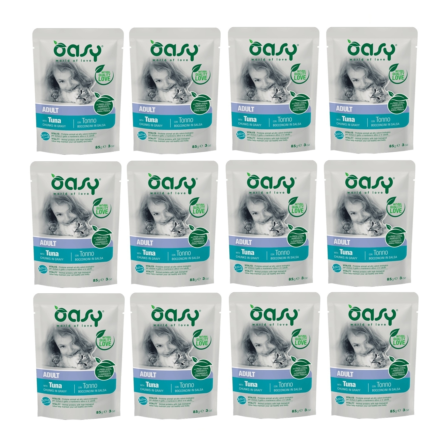Zestaw Oasy, Karma mokra dla kotów, Adult with Tuna, 12 saszetek po 85g