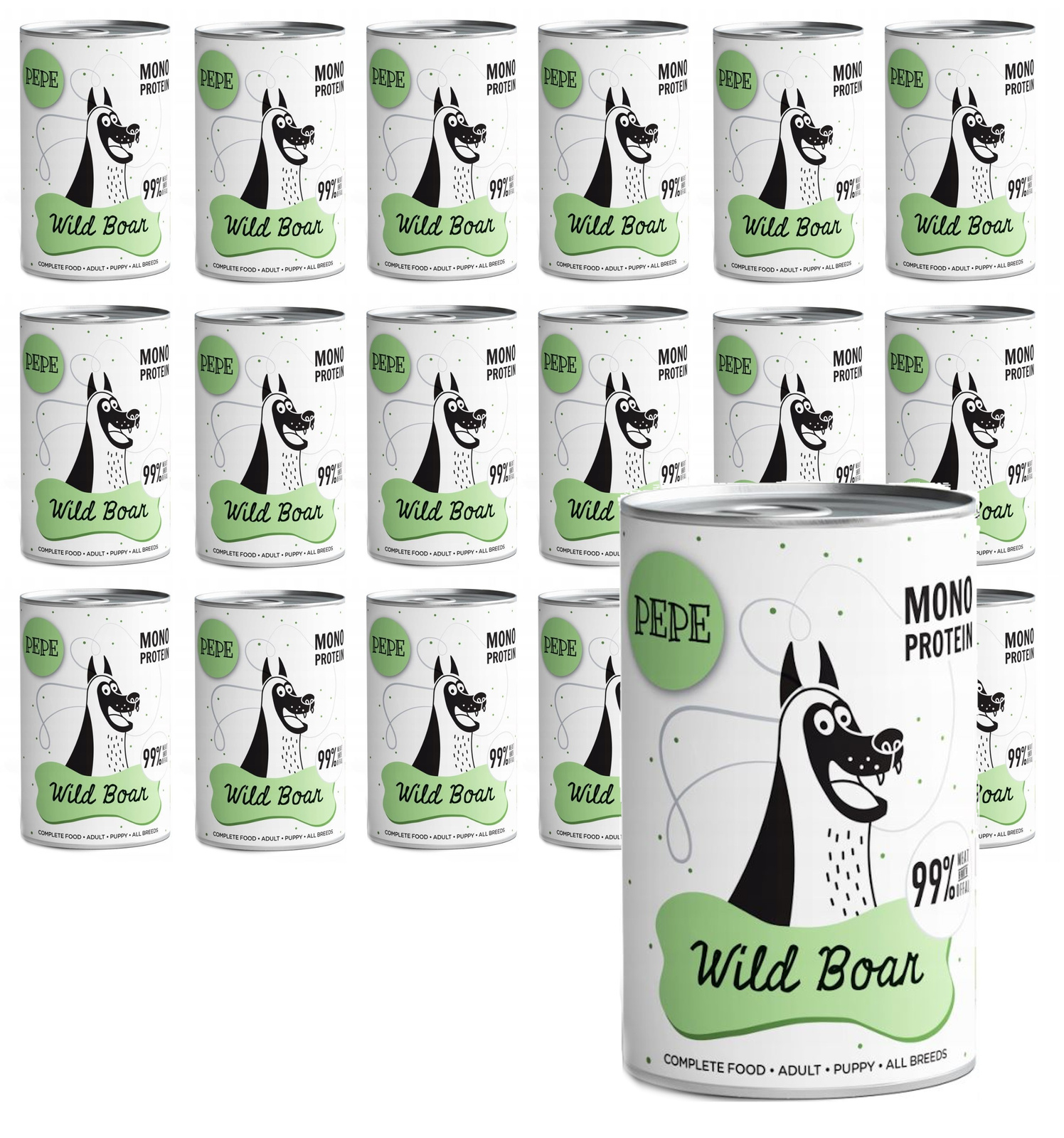 PAKA ZWIERZAKA MOKRA KARMA DLA PSA PEPE WILD BOAR DZICZYZNA 18x400g