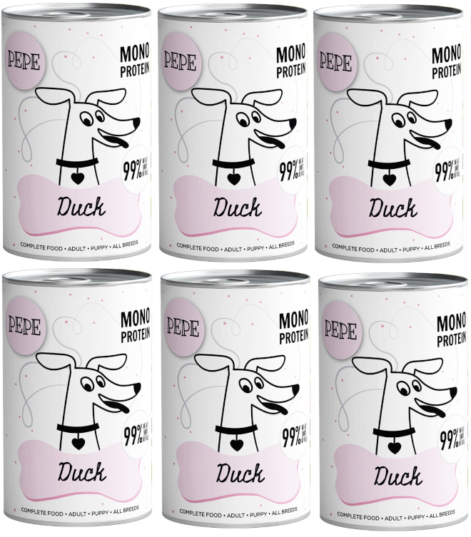 Zestaw zawiera 6 puszek karmy PAKA ZWIERZAKA PEPE DUCK KACZKA 400g.